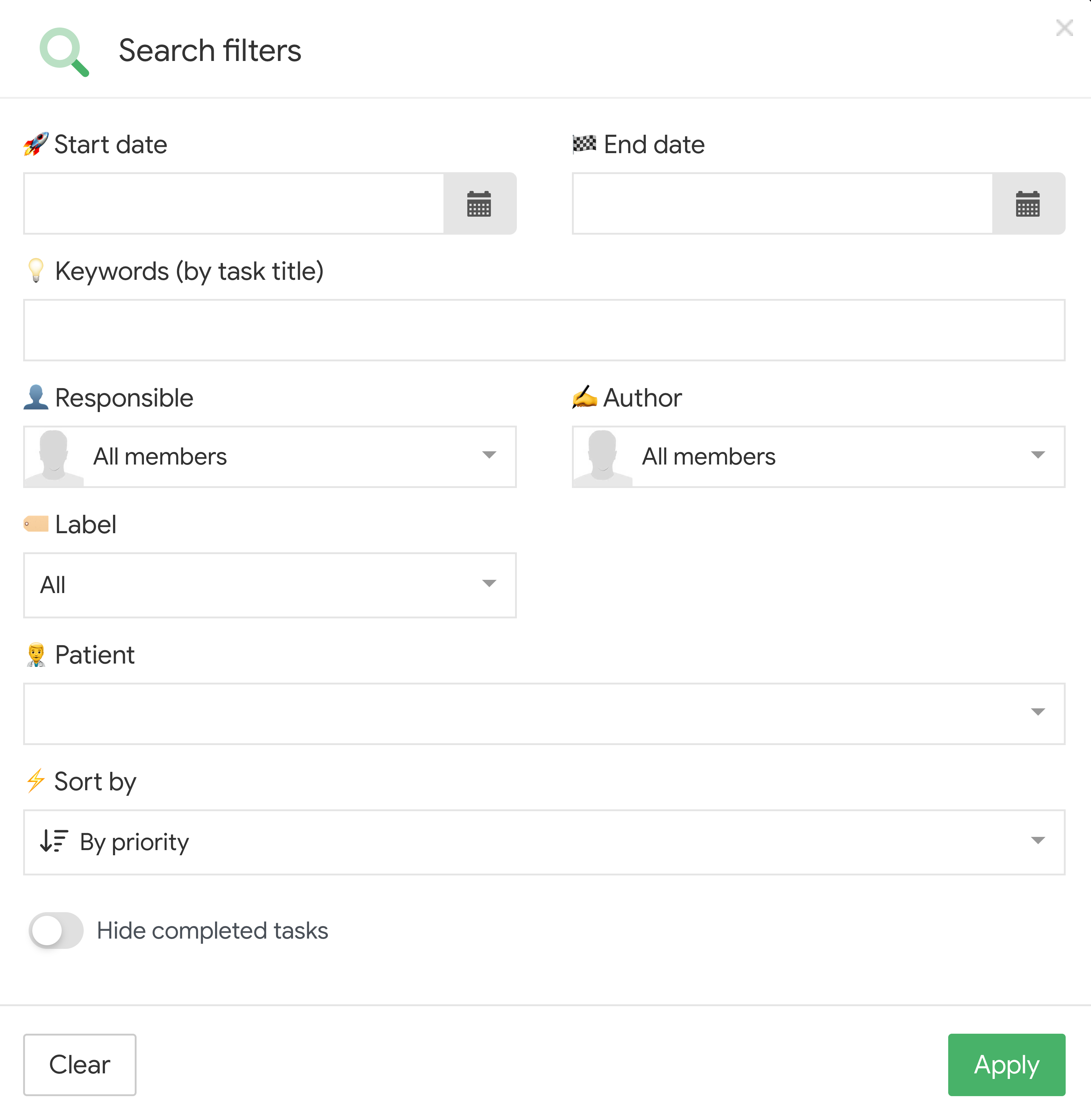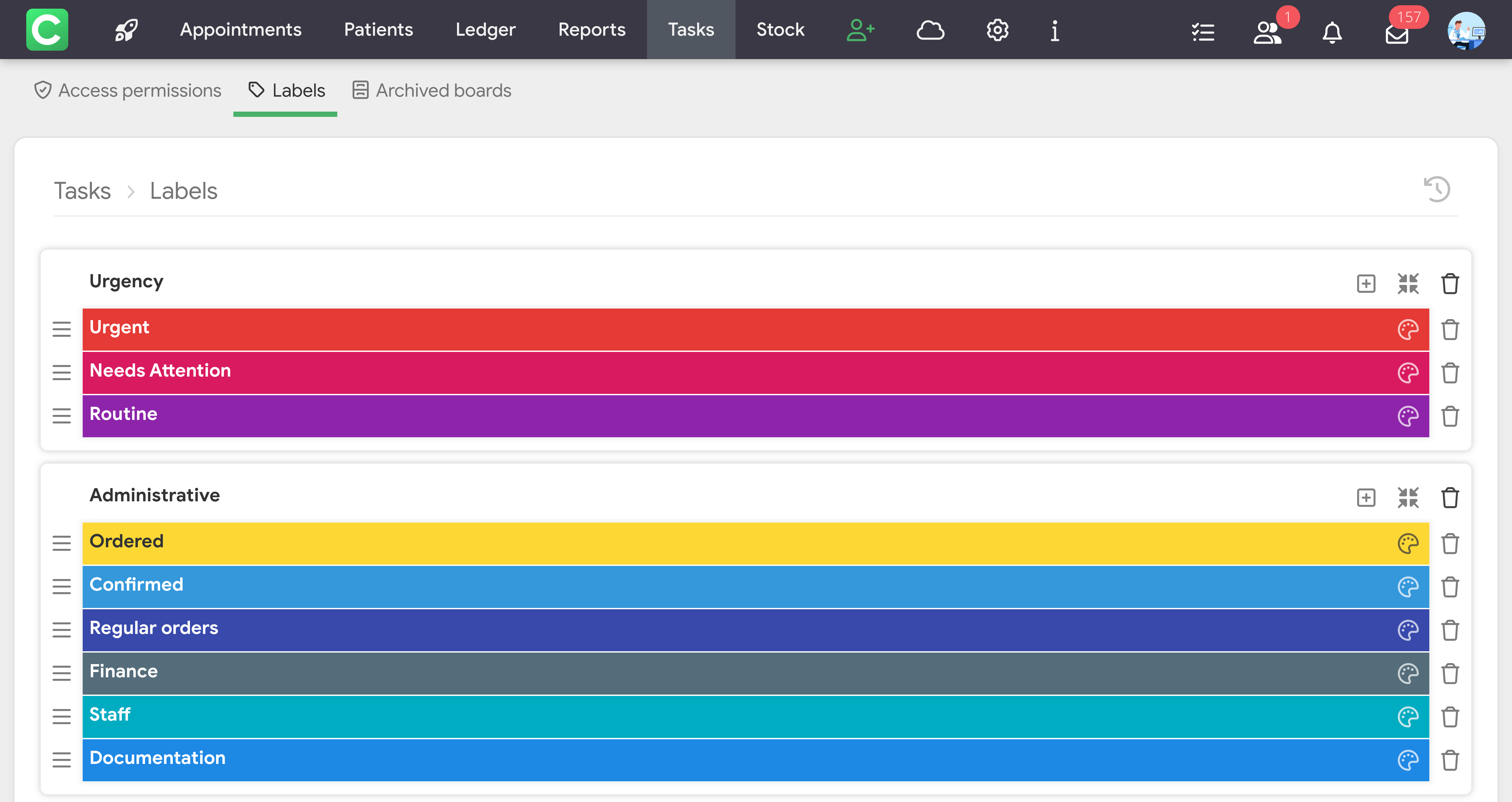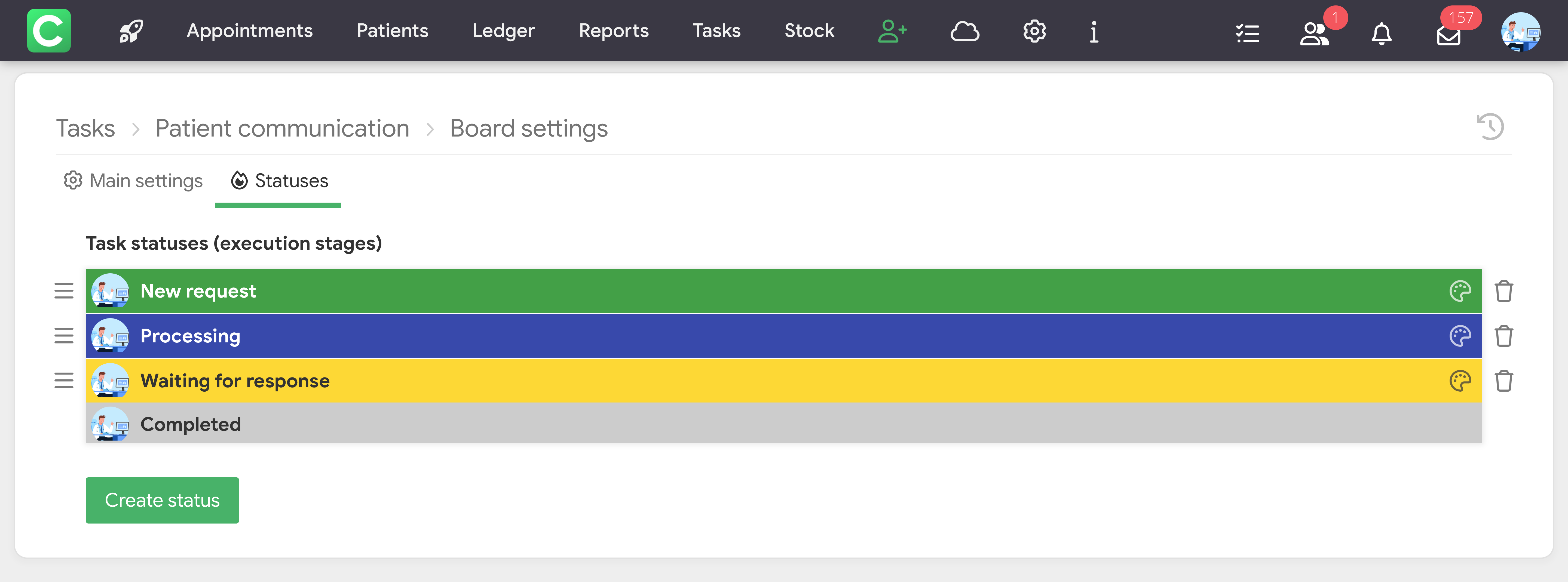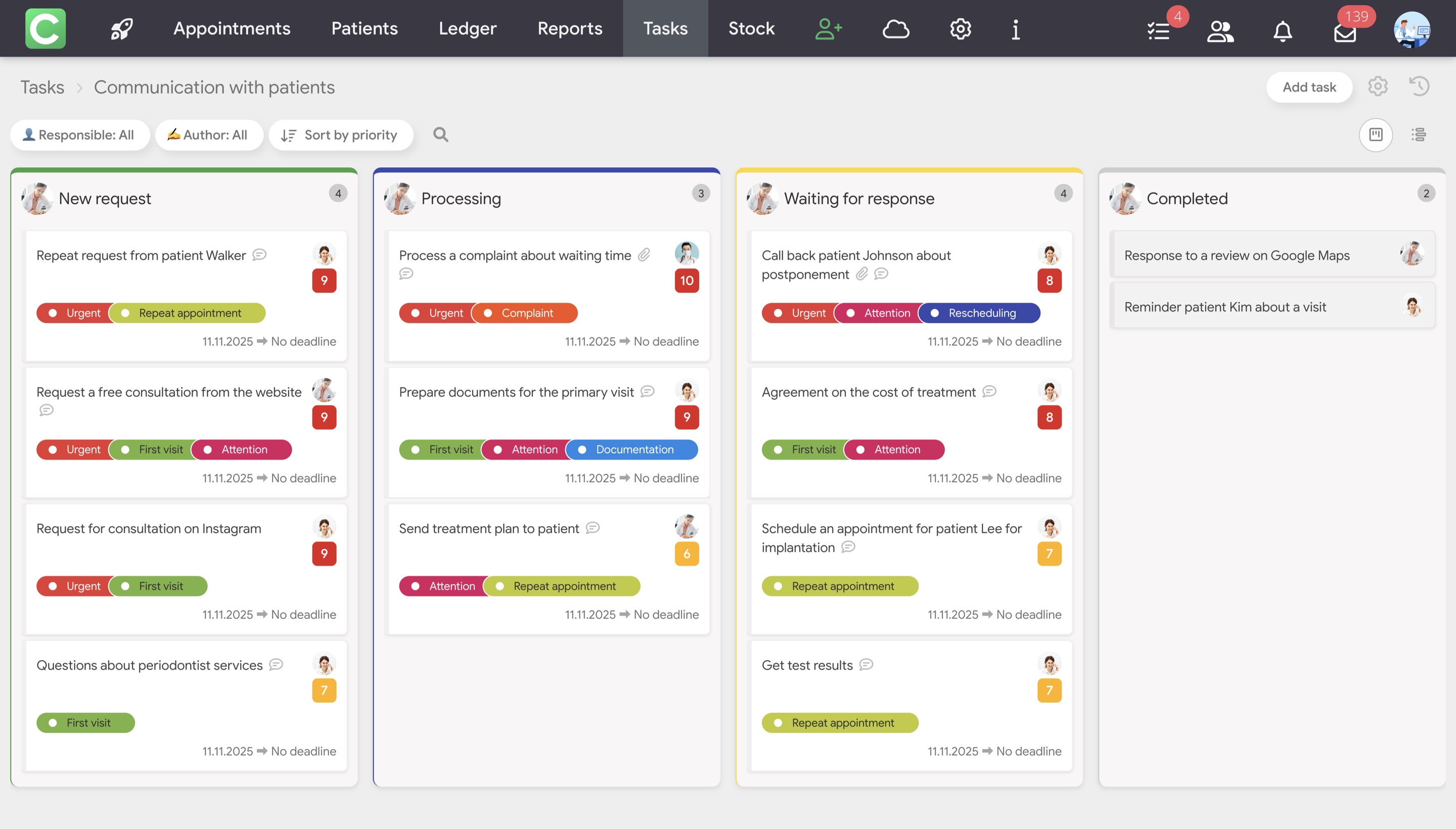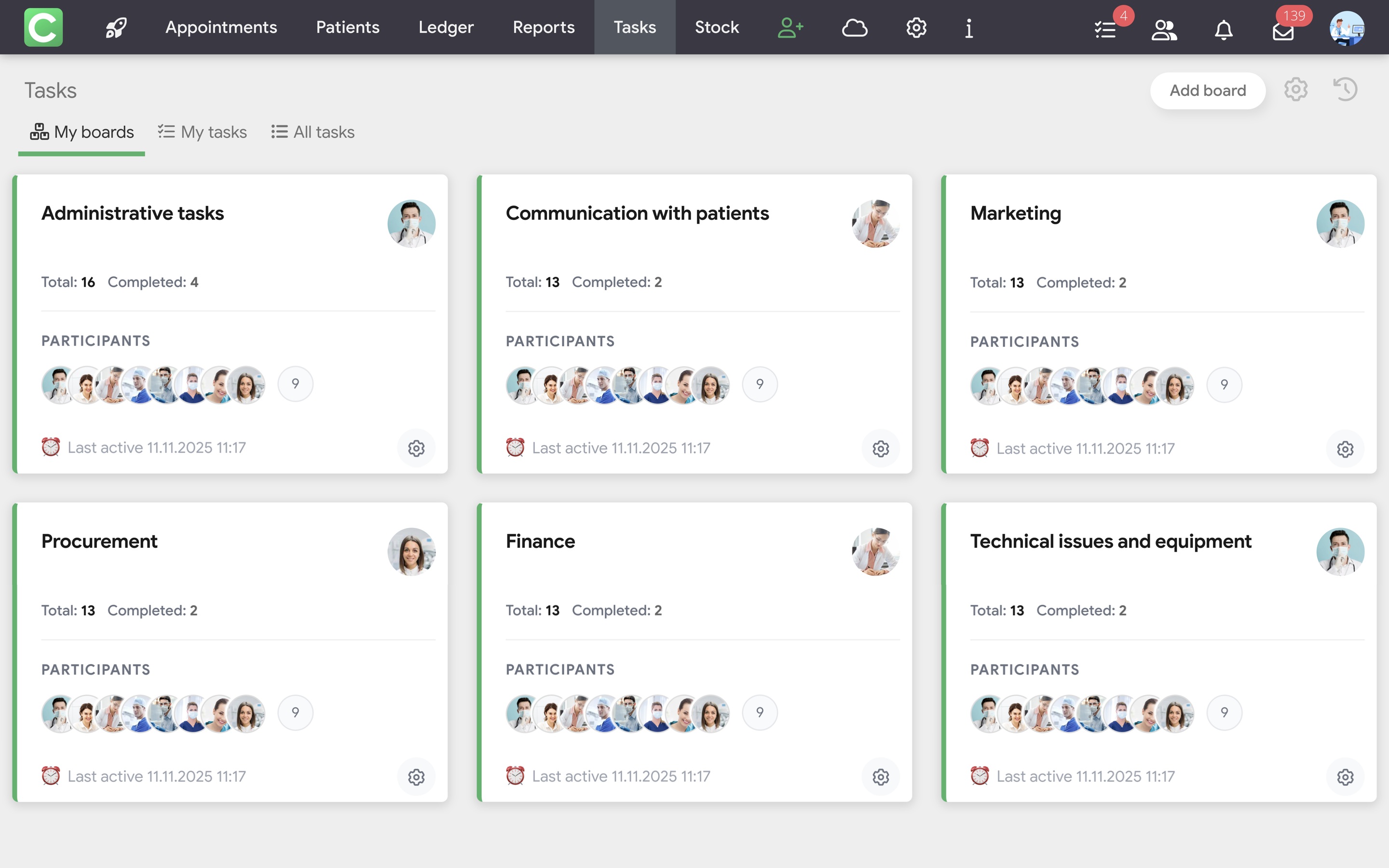 Tasks in Cliniccards is a task management system that works on the principle of Kanban boards.