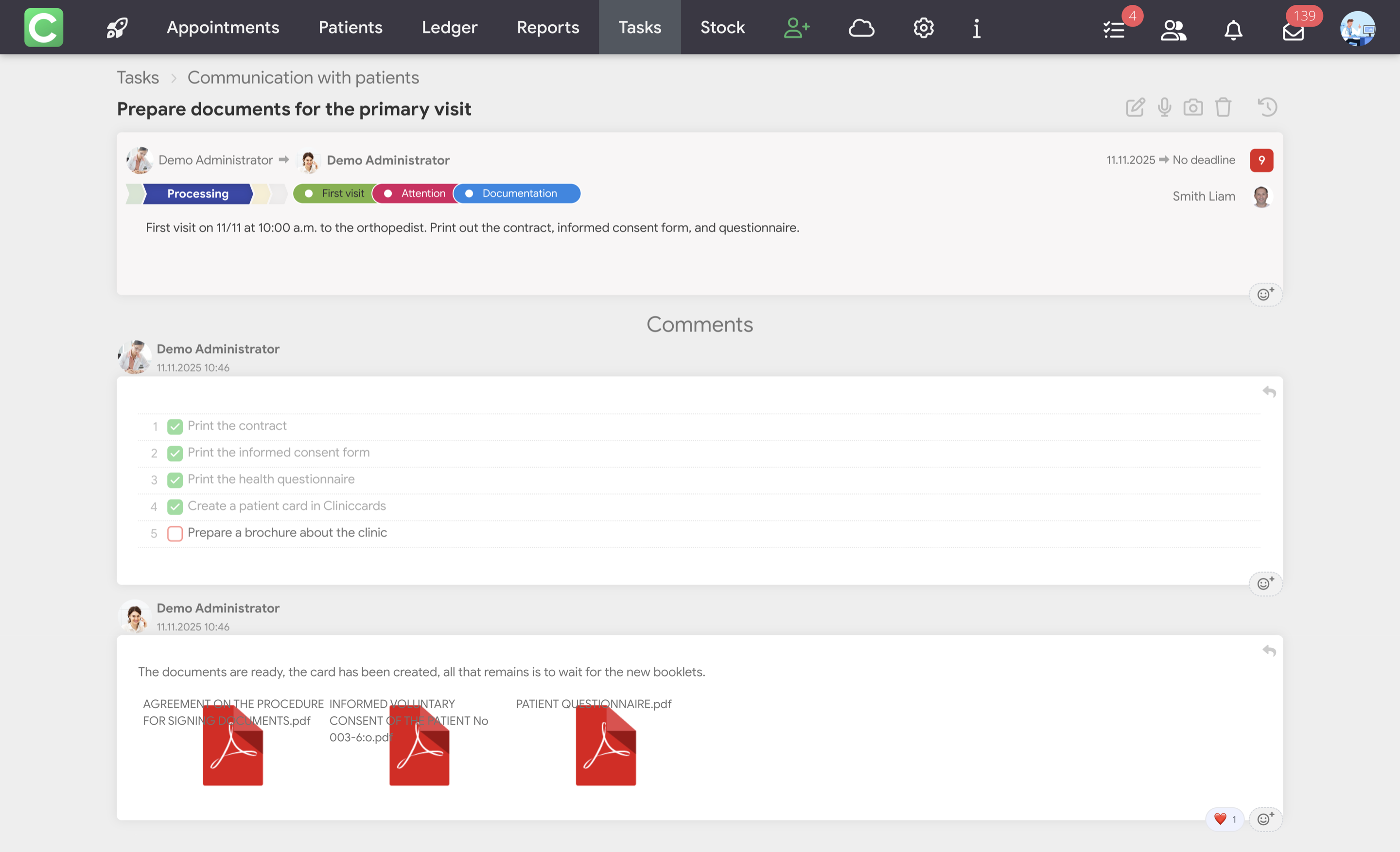 All clinic tasks in one place