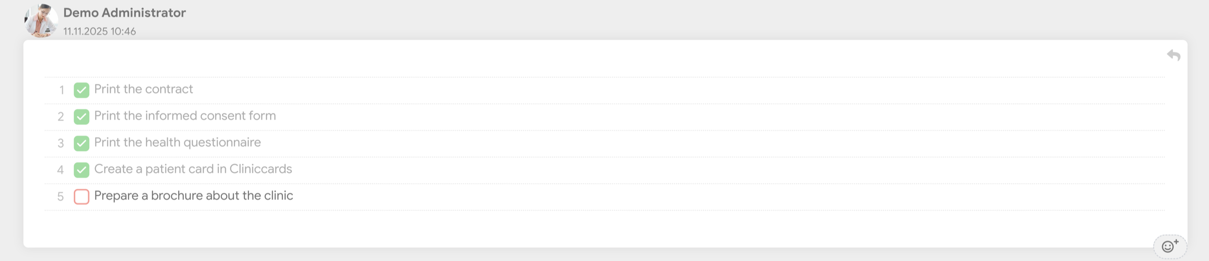 To start working with Tasks, you need to activate the module in the clinic settings.