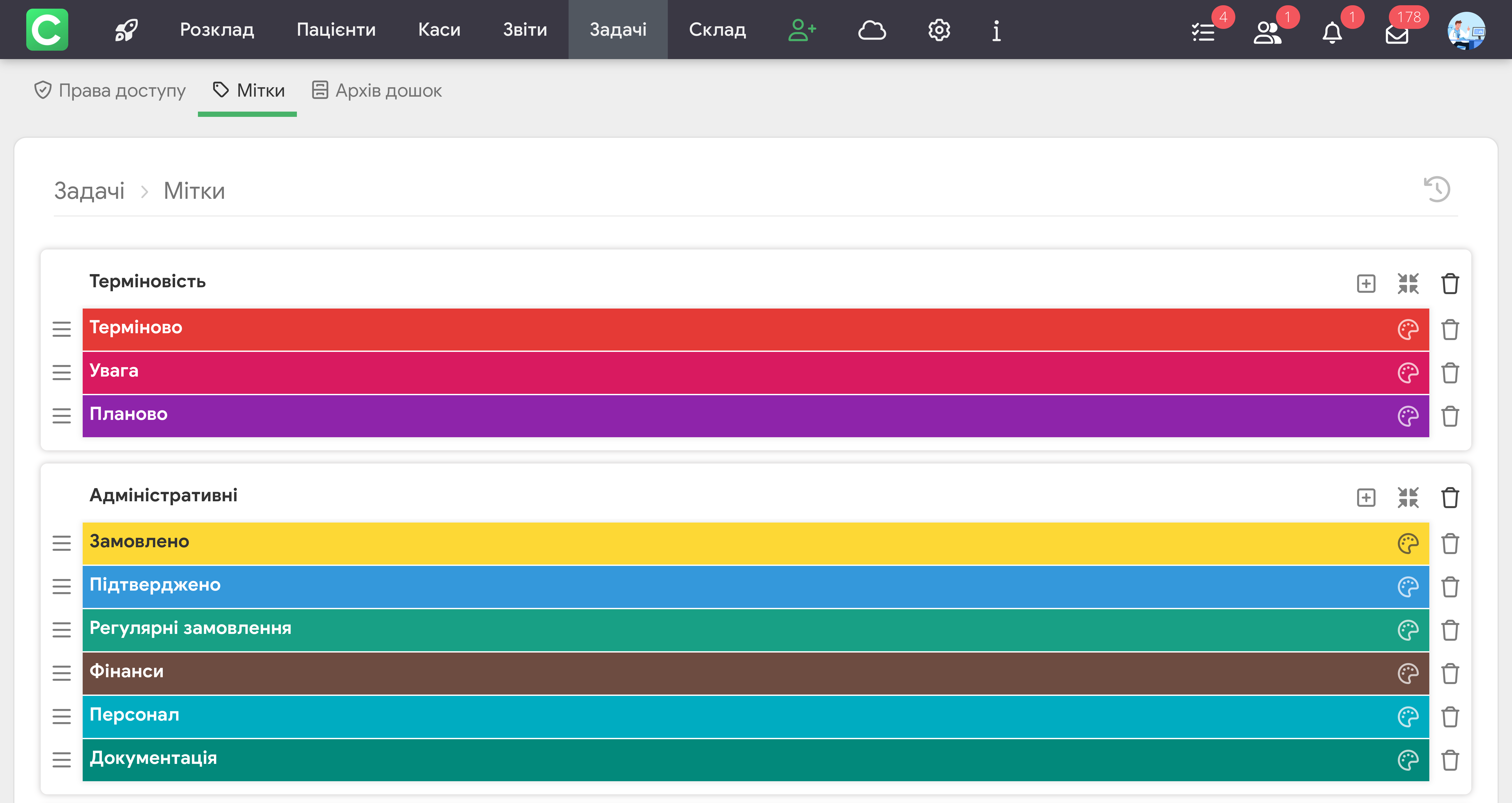 Задачі в Cliniccards – це система управління завданнями, яка працює за принципом канбан-дошок.